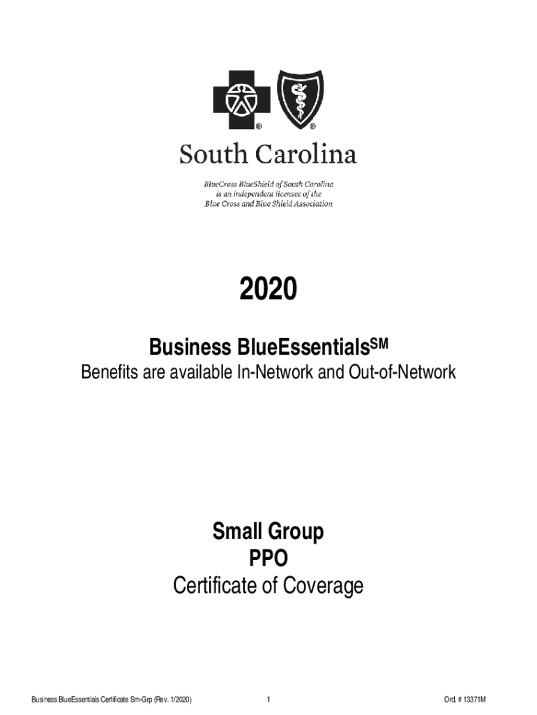 Certificate of CoverageBusiness BlueEssentials Certificate Sharp (Rev. 1/2020)1Ord. # 13371Mwww.SouthCarolinaBlues.com