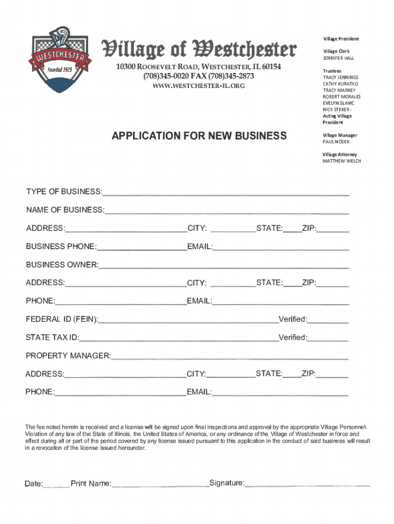 The new business license applicationwestchester requires information such as business name, owner information, business address, type of business, and contact information.