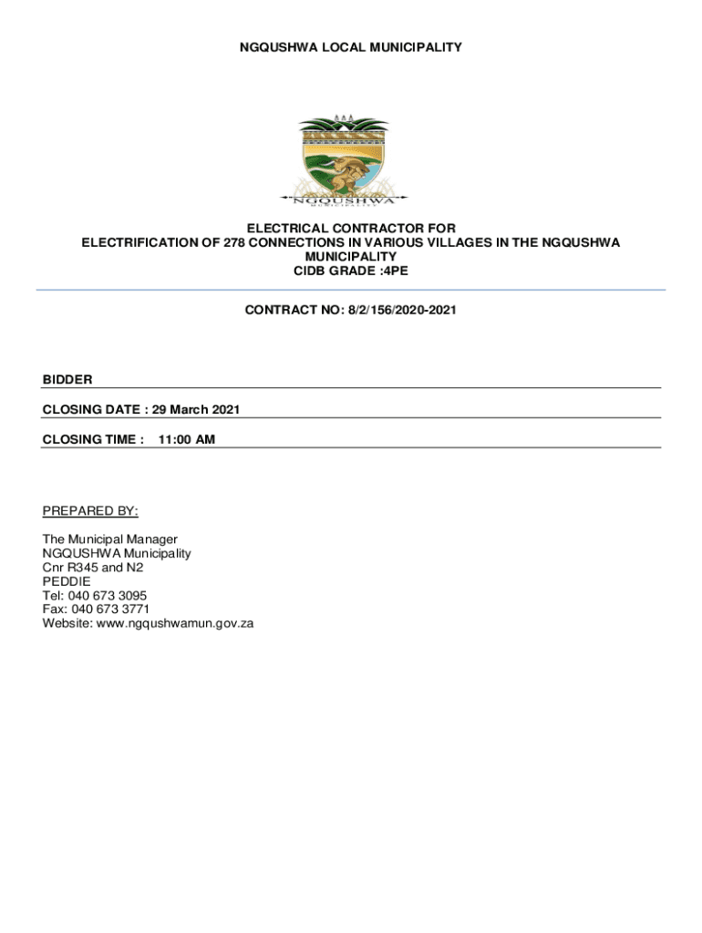 Get the free Ngqushwa Bid Document for Electrification of 278 connections ... - ngqushwamun gov