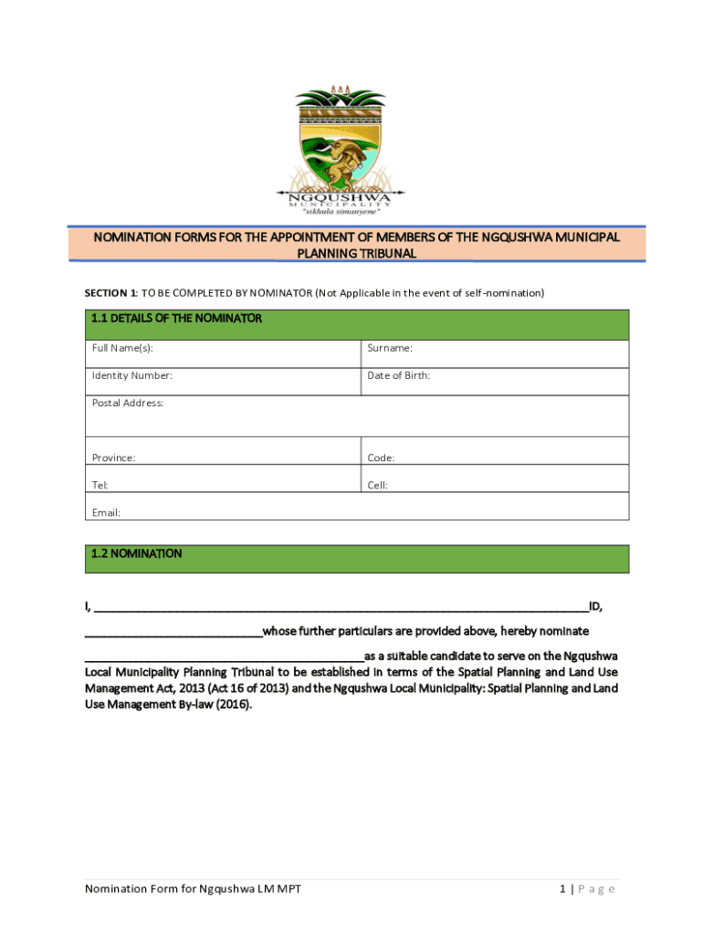 Edit your nomination-forms-municipal-planning-tribunalpdf - ngqushwamun gov form online