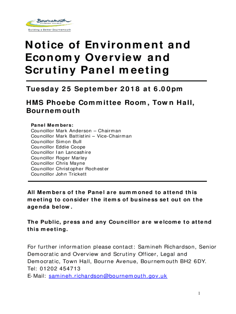 Get the free Notice of Environment and Economy Overview and Scrutiny ...