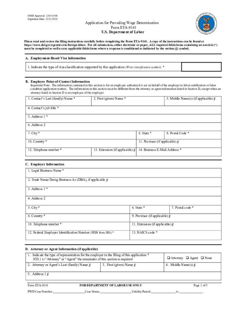 Expiration Date: 12/31/2022Application for Prevailing Wage Determination