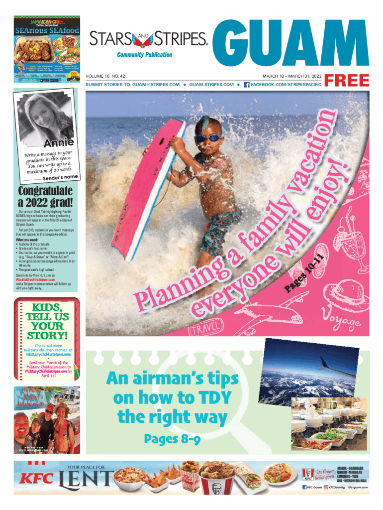 VOLUME 16 NO. 42MARCH 18 MARCH 31, 2022GUAM.STRIPES.COMICS, TELL US YOUR STORY!an f an e g n n i o n y n r an l e P check out more military children stories at: military child.stripes.commend your