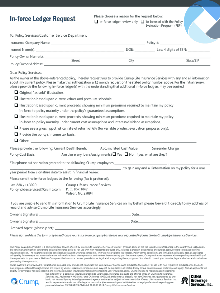 Please choose a reason for the request below: Enforce Ledger Request Enforce ledger review only q To be used with the Policy Evaluation Program (PEP)To: Policy Services/Customer Service Department