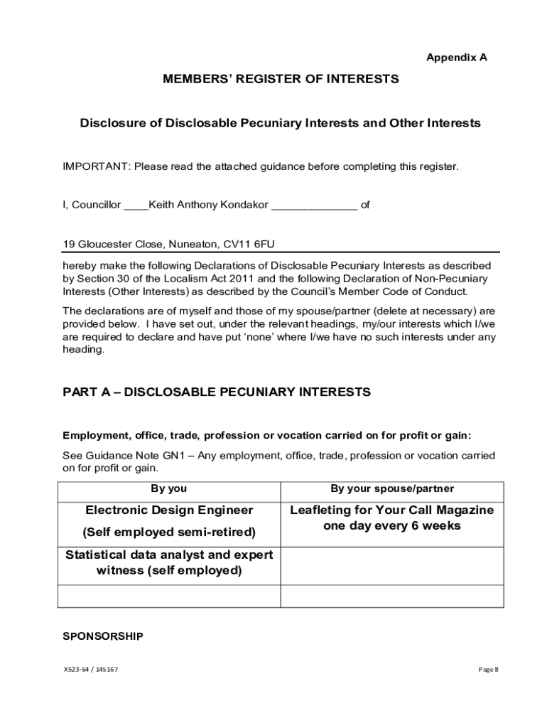Appendix MEMBERS REGISTER OF INTERESTSDisclosure of Disclosable Pecuniary Interests and Other InterestsIMPORTANT: Please read the attached guidance before completing this register. I, Councillor ___Keith