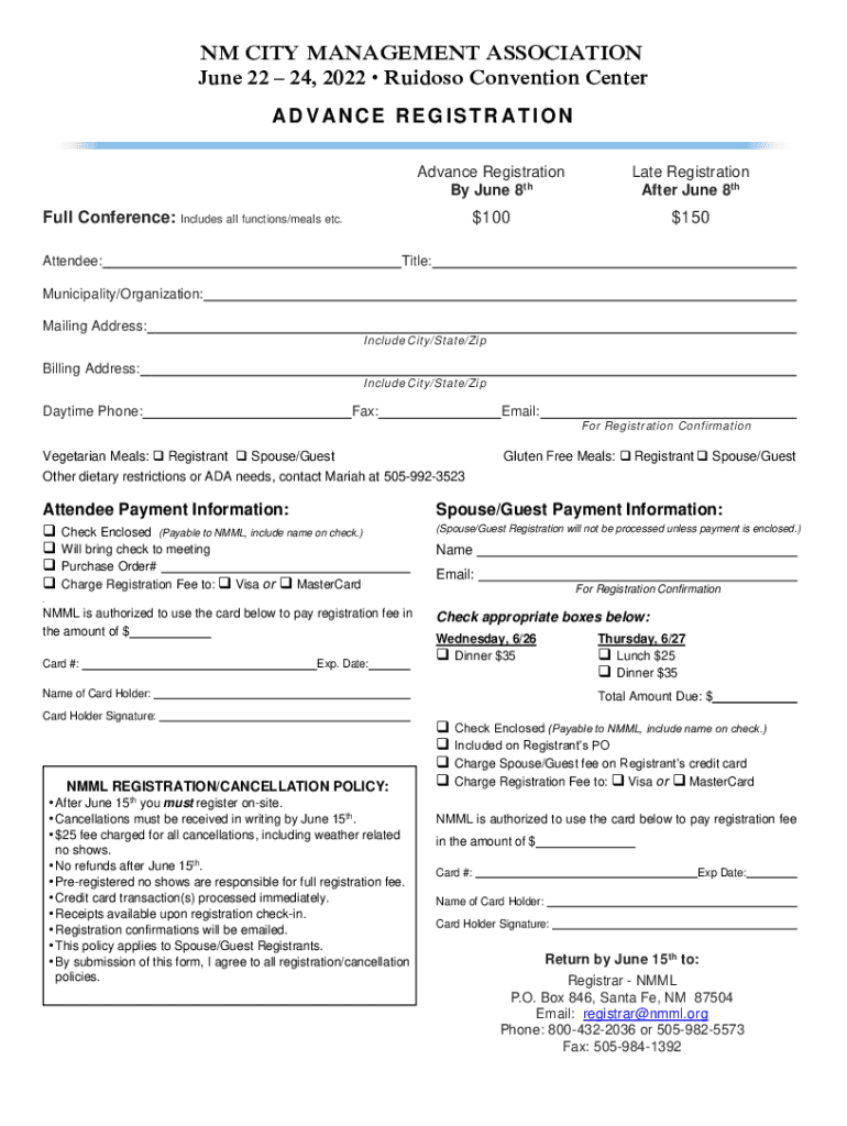 Submit the filled out forms to the NM City Management Association either online or in person.