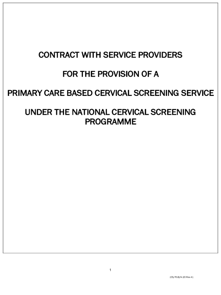 CONTRACT WITH SERVICE PROVIDERS FOR THE PROVISION OF A PRIMARY CARE BASED CERVICAL SCREENING SERVICE UNDER THE NATIONAL CERVICAL SCREENING PROGRAMME1 (CS/PUB/A20 Rev 4)Table of Contents1.DEFINITIONS