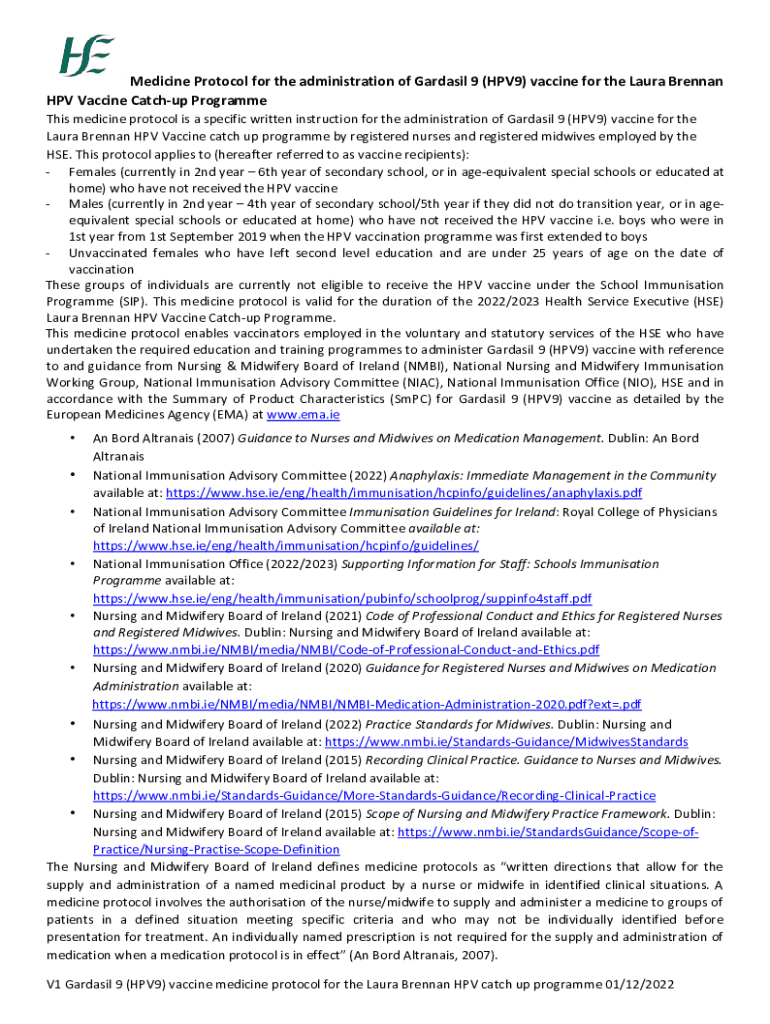 MedicineProtocolfortheadministrationofGardasil9(HPV9)vaccinefortheLauraBrennan
