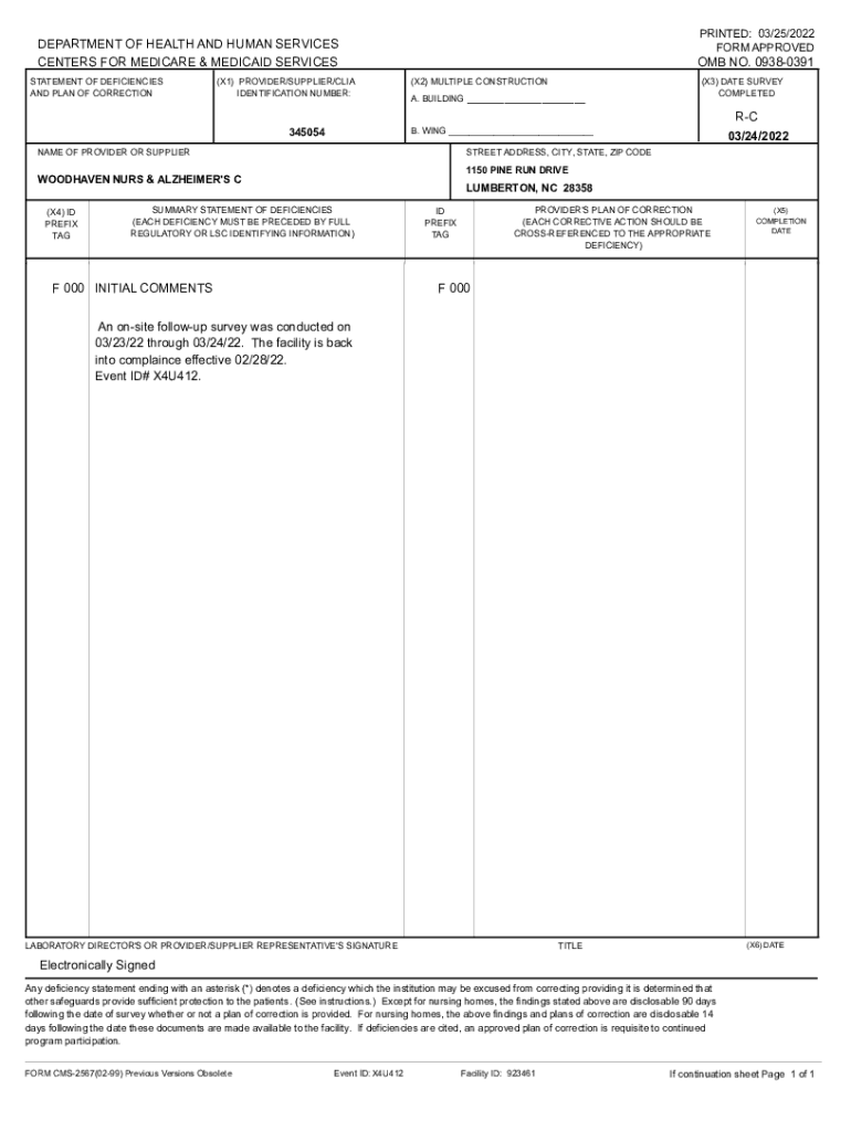AND PLAN OF CORRECTION(X1) PROVIDER/SUPPLIER/CIA