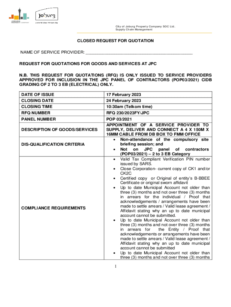 Supply Chain ManagementCLOSED REQUEST FOR QUOTATION
