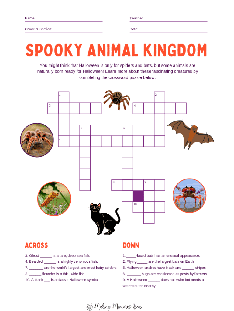 Get the free Orange and Purple Animal Halloween Crossword Puzzle Worksheet