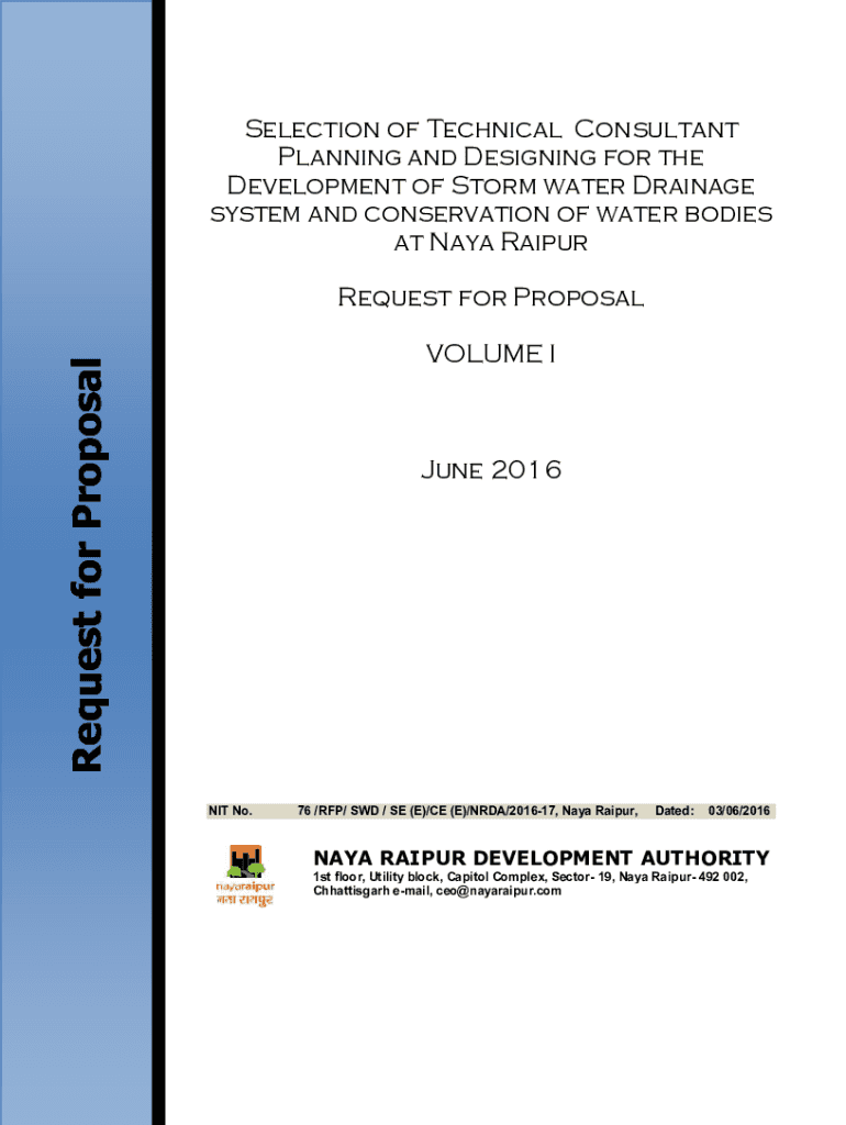 Selection of Technical Consultant Planning and Designing for the Development of Storm water Drainage system and conservation of water bodies at Naya Raipur Request for ProposalRequest for ProposalVOLUME