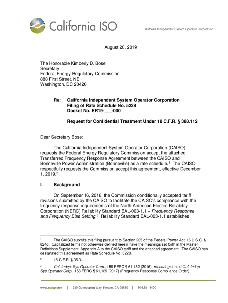 California Independent System Operator Corporation August 28, 2019The Honorable Kimberly D. Bose Secretary Federal Energy Regulatory Commission 888 First Street, NE Washington, DC 20426Re:California