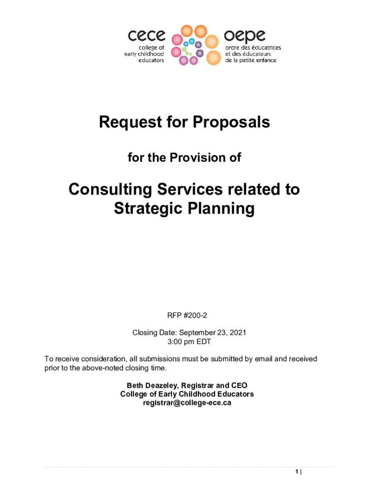 Request for Proposals for the Provision consulting Services related to Strategic Planning RFP #2002 Closing Date: September 23, 2021 3:00 pm EDT To receive consideration, all submissions must be submitted