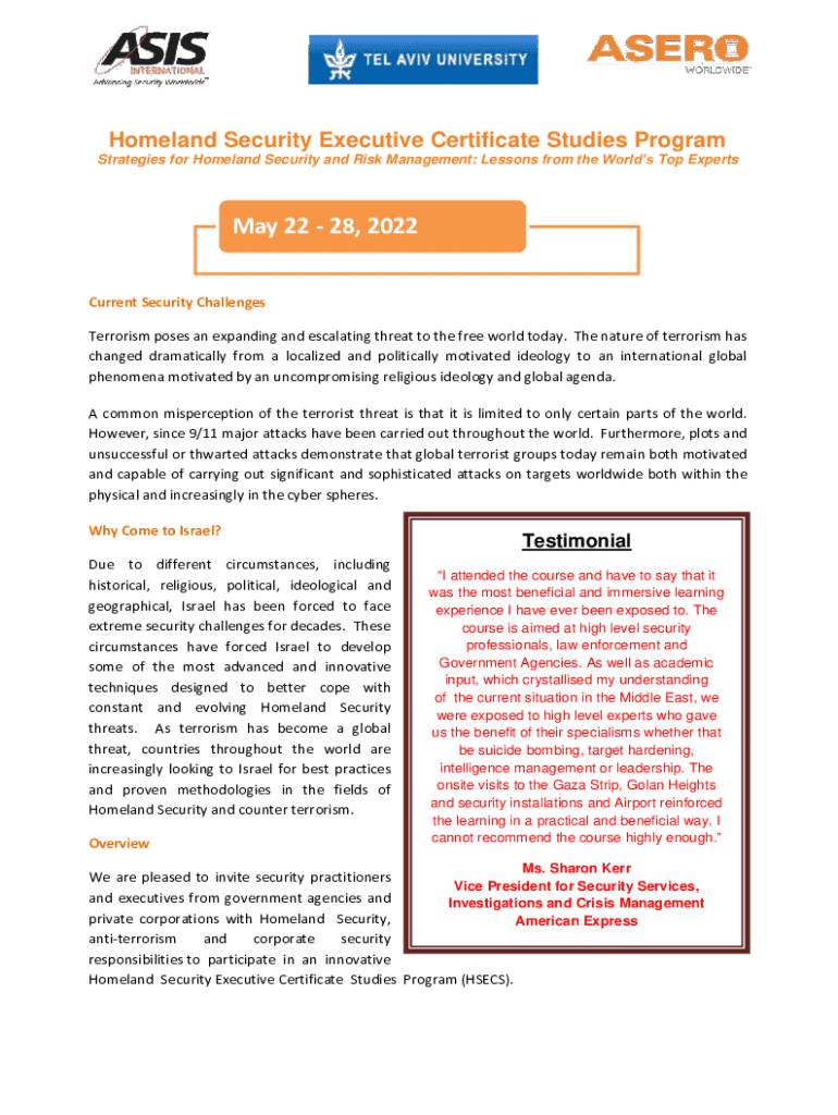 Get the free Homeland Security Executive Certificate Studies (HSECS)