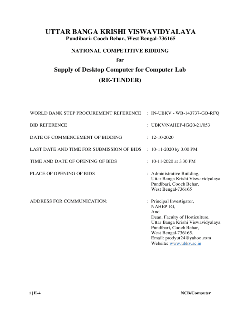 UTTER BANG KRISTI VISWAVIDYALAYA Punditry: Coach Bear, West Bengal736165 NATIONAL COMPETITIVE BIDDING supply of Desktop Computer for Computer Lab (PRETENDER)WORLD BANK STEP PROCUREMENT REFERENCE: