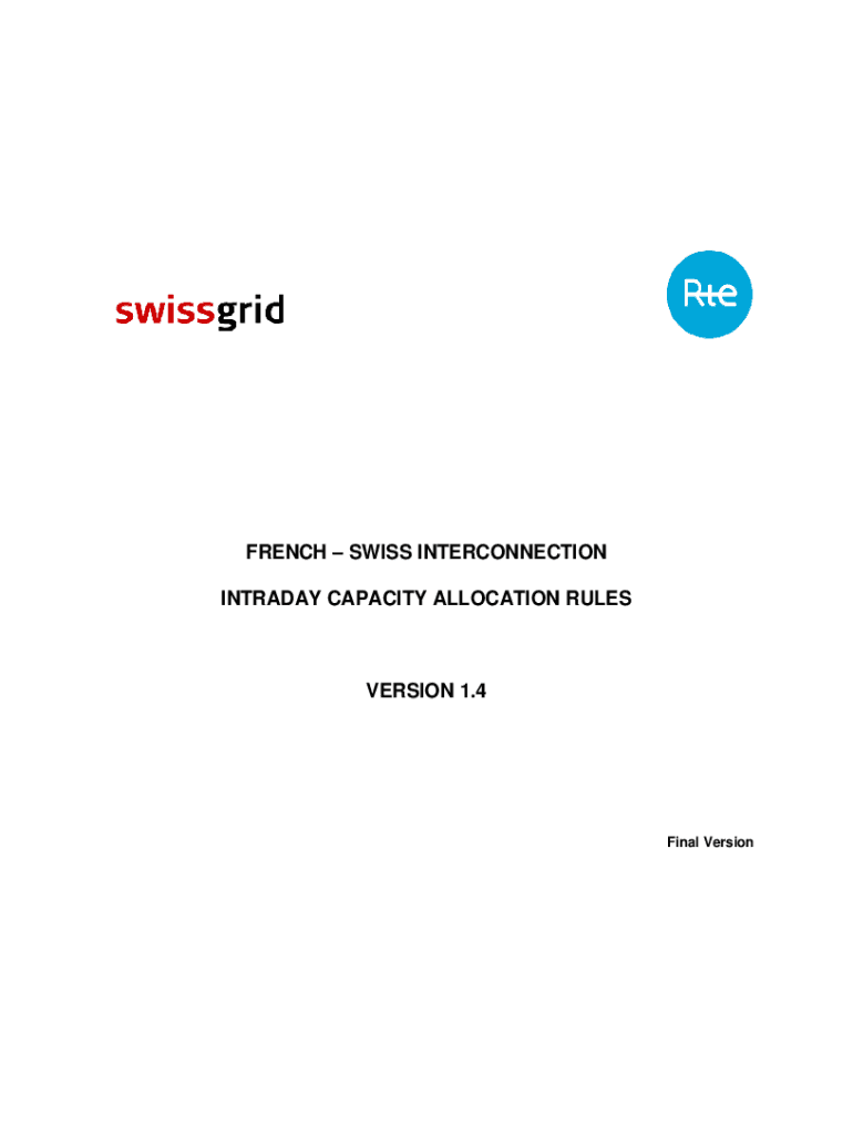 INTRADAY CAPACITY ALLOCATION REVERSION 1.4Final VersionSection I. Introduction...............................................................................................................