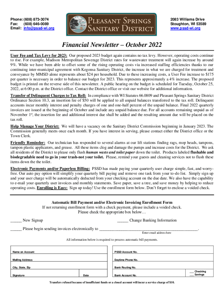 User Fee and Tax Levy for 2023: Our proposed 2023