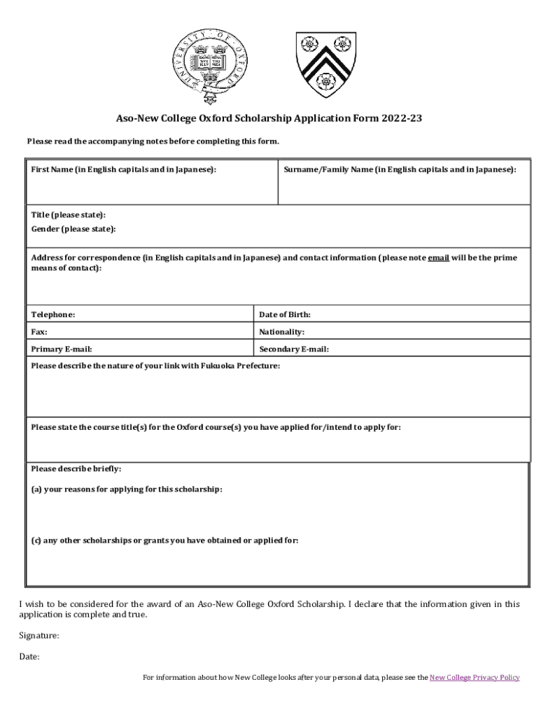Aso-New College Oxford Scholarship is not the form you're looking for?Search for another form here.