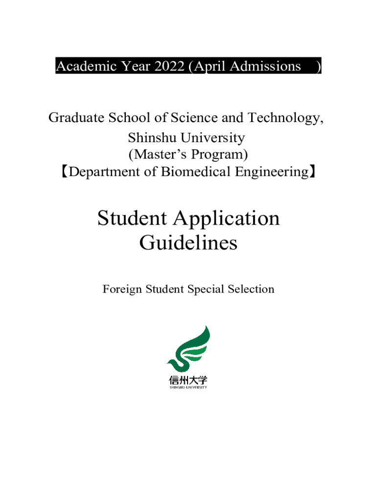 Academic Year 2022 (April Admissions)Graduate School of Science and Technology,