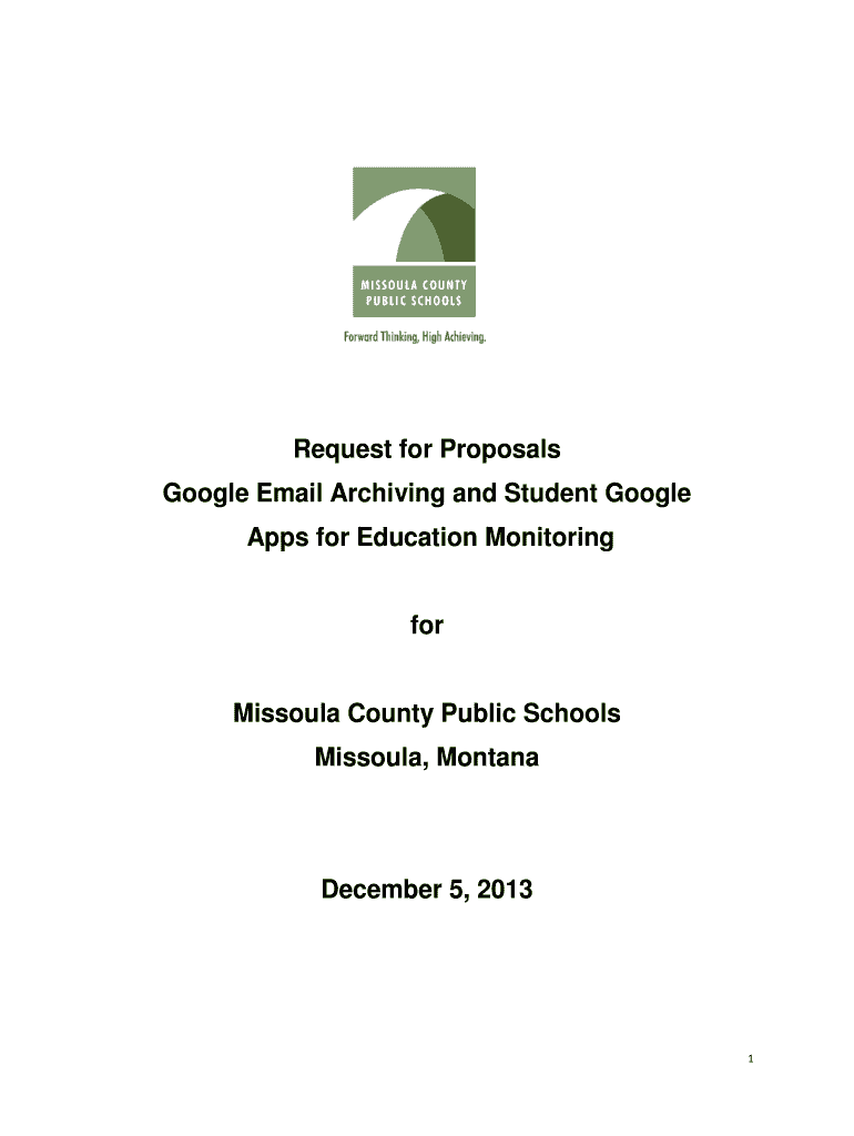 Request for Proposals Google Email Archiving and Student Google Apps for Education Monitoring for Missoula County Public Schools Missoula, Montana December 5, 2013 1 CALL FOR PROPOSALS Notice is hereby
