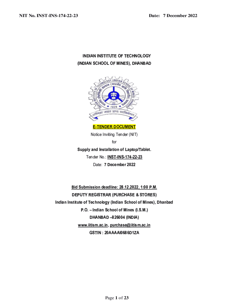 Get the free NIT No. INST-INS-174-22-23 Date