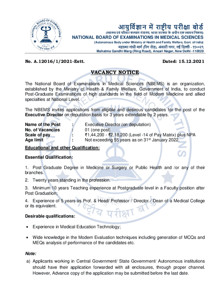Get the free NATIONAL BOARD OF EXAMINATIONS IN MEDICAL SCIENCES