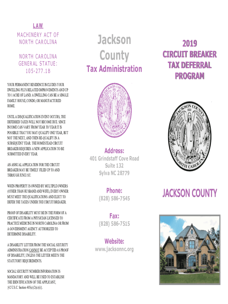 LAW MACHINERY ACT OF NORTH CAROLINA GENERAL STATUE: 105277.1BJackson County Tax AdministrationYOUR PERMANENT RESIDENCE INCLUDES YOUR DWELLING PLUS RELATED IMPROVEMENTS AND UP TO 1 ACRE OF LAND. A