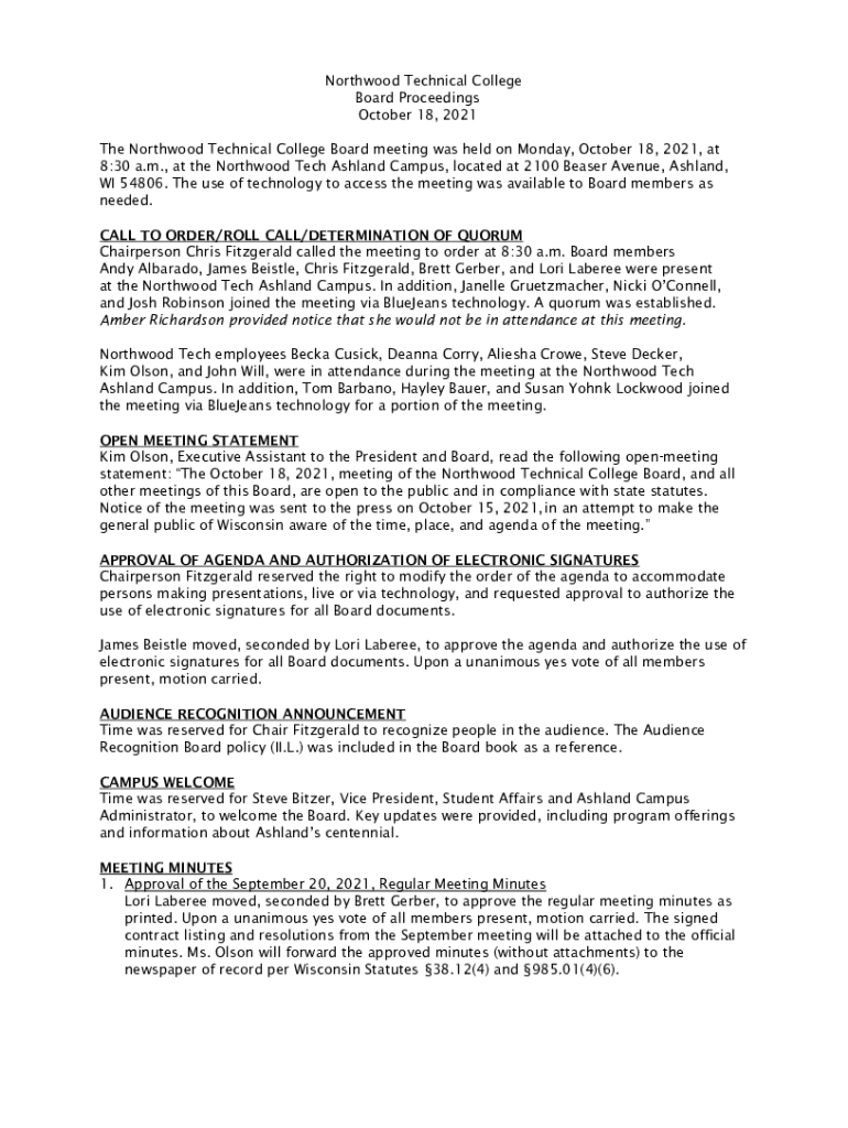 Get the free Northwood Technical College Board Proceedings October 18 ...