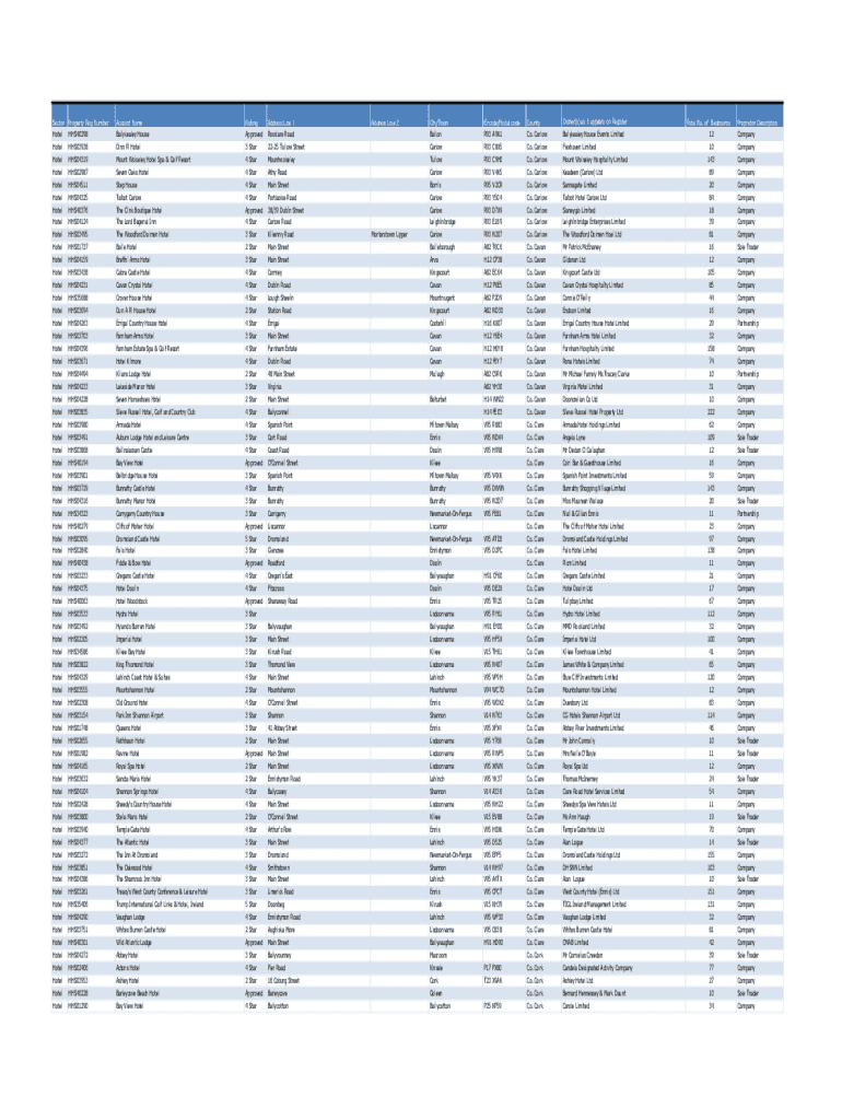 Sector HotelProperty Reg Number HHS40298Account Name Ballykealey Operating ApprovedAddress Line 1 Rosalie Reality/Town BallonEircode/Postal code R93 A9K1County Co. CarlowOwner(s) as it appears on