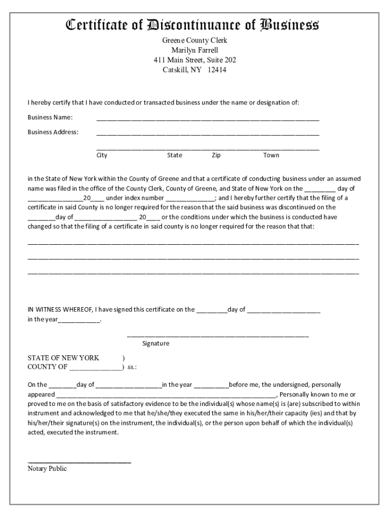Get the free Certificate of Discontinuance of Business - Greene Government