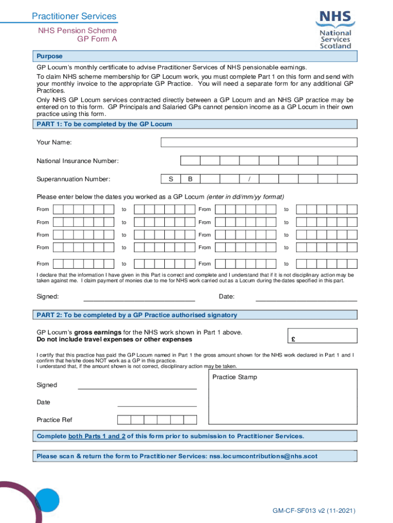 Get the free NHS Pension Scheme GP Form A - National Services Scotland