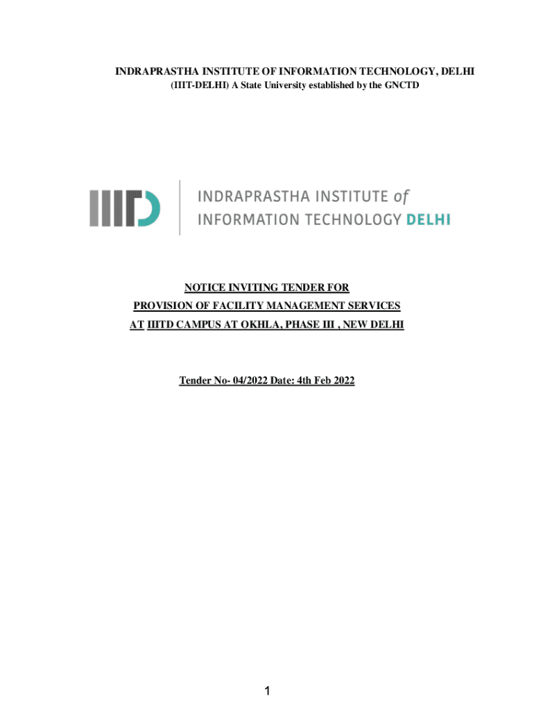 Get the free notice inviting tender for provision of security services - IIIT-Delhi