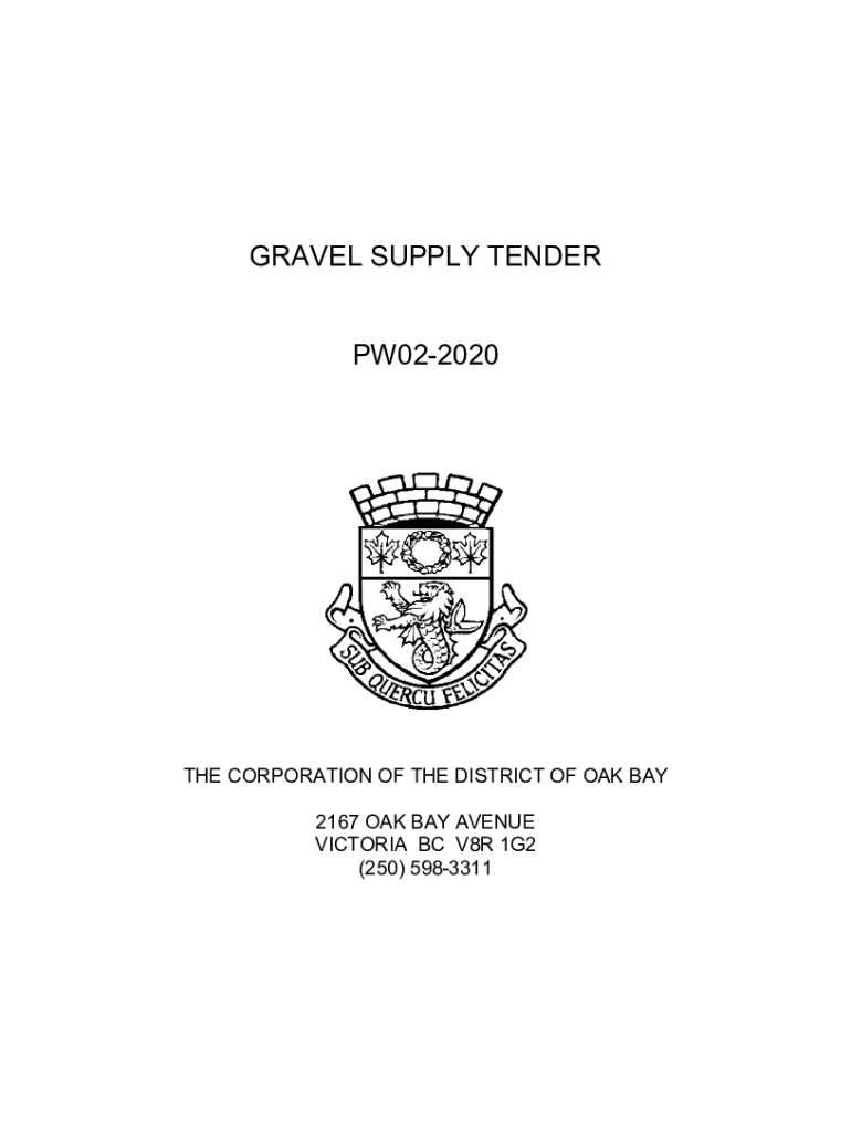 GRAVEL SUPPLY TENDER PW022020THE CORPORATION OF THE DISTRICT OF OAK BAY 2167 OAK BAY AVENUE VICTORIA BC V8R 1G2 (250) 5983311THE CORPORATION OF THE DISTRICT OF OAK BAY GRAVEL SUPPLY TENDER; PW022020TABLE
