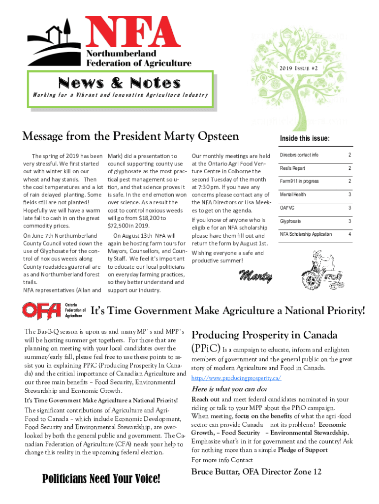 2019 I SSR E #2 N EWS & Notes Working for a Vibrant and Into vat ve AGR culture e Ind us try message from the President Marty OpsteenInside this issue:Our monthly meetings are held at the Ontario