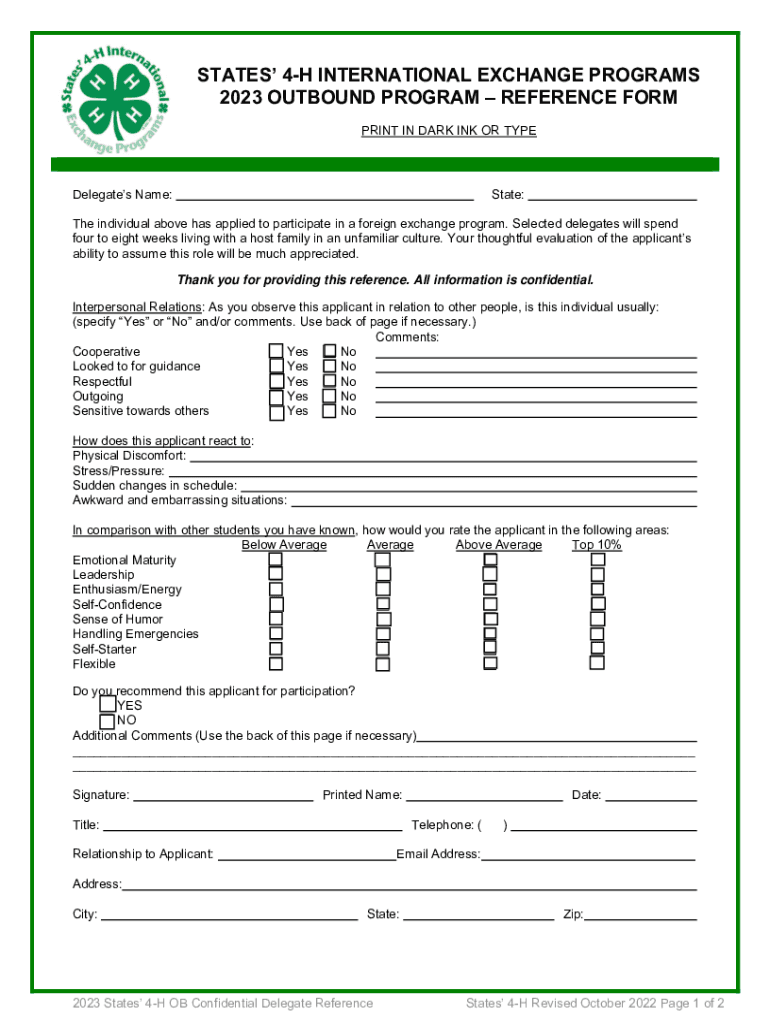 2023 OUTBOUND PROGRAM REFERENCE FORM