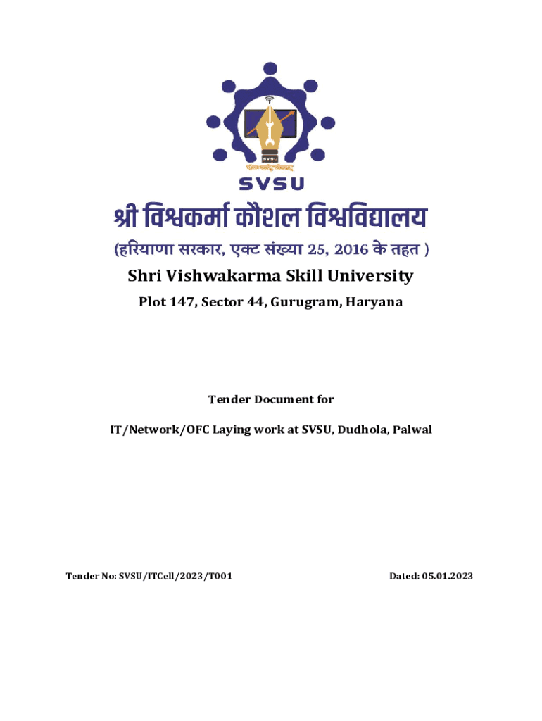 IT/Network/OF Laying work at GVSU, Mudhole, PalwalTender No: GVSU/ITC ell/2023/T001Dated: 05.01.20231.