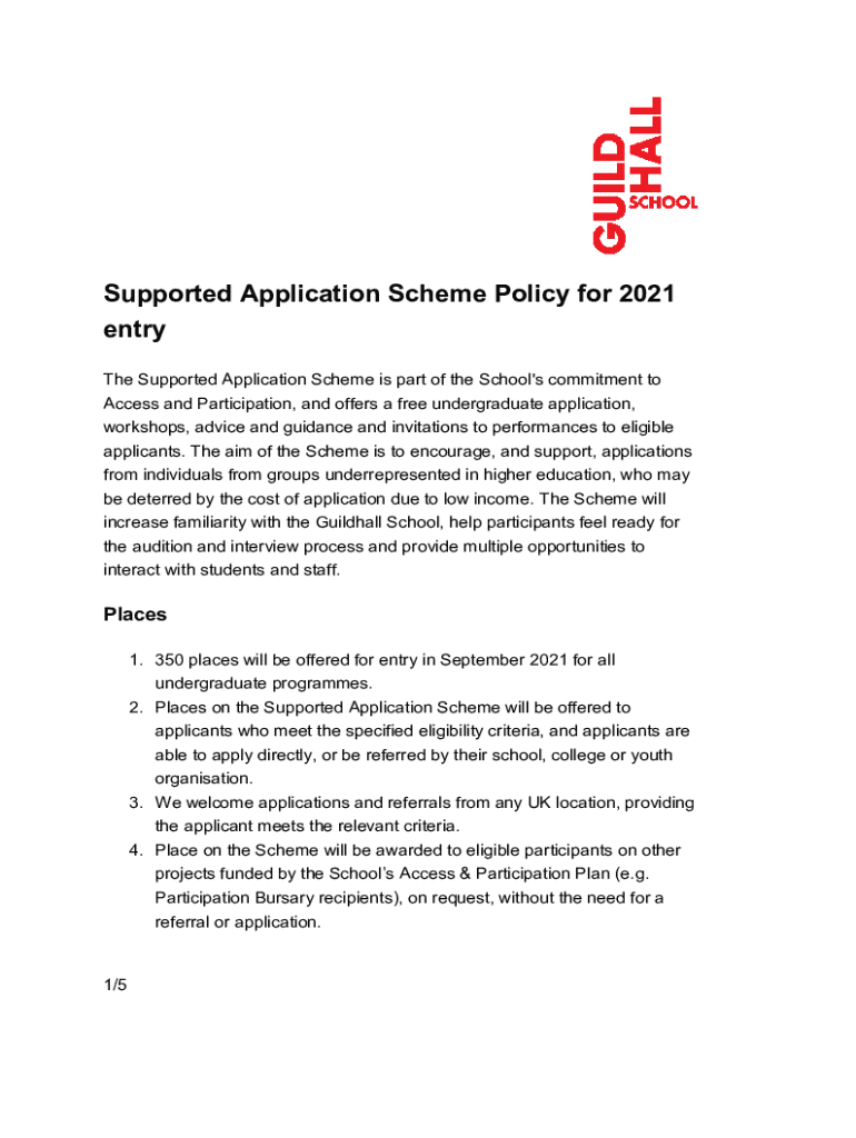Supported Application Scheme Policy for 2021 entry The Supported Application Scheme is part of the School\'s commitment to Access and Participation, and offers a free undergraduate application, workshops,