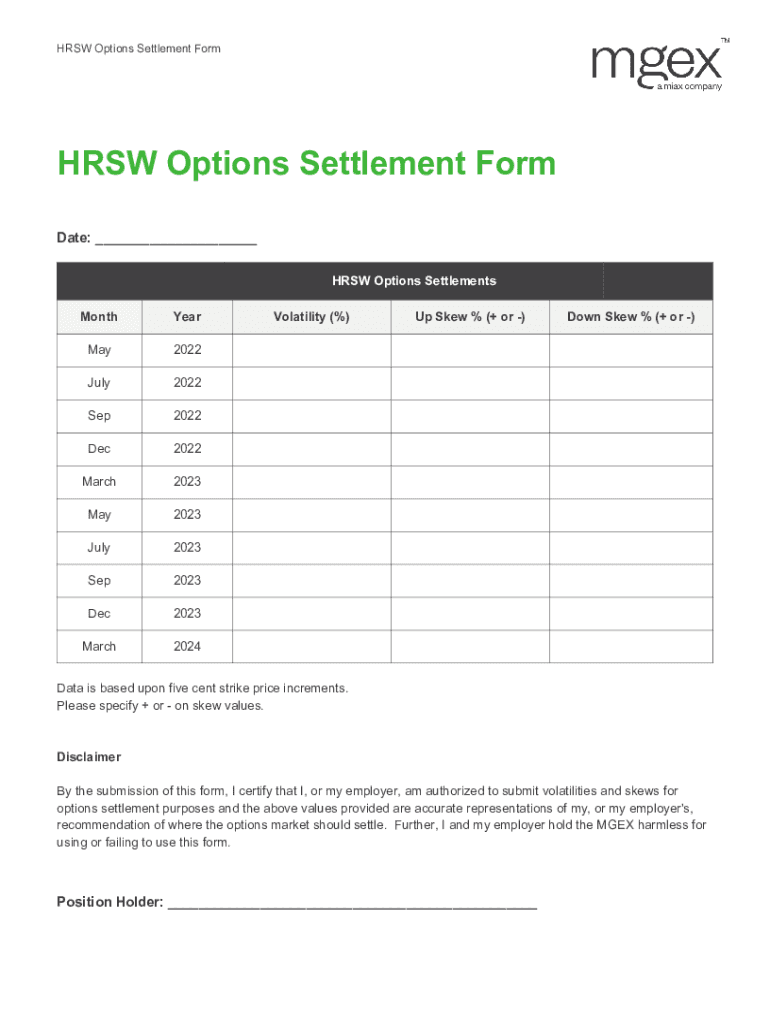 Get the free HRSW Options Settlement Form