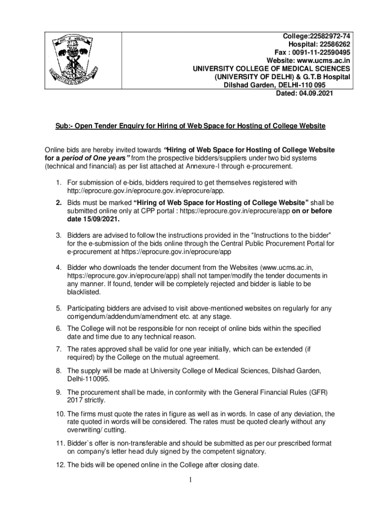 College:2258297274 Hospital: 22586262 Fax : 00911122590495 Website: www.ucms.ac.in UNIVERSITY COLLEGE OF MEDICAL SCIENCES (UNIVERSITY OF DELHI) & G.T.B Hospital Dished Garden, DELHI110 095 Dated: