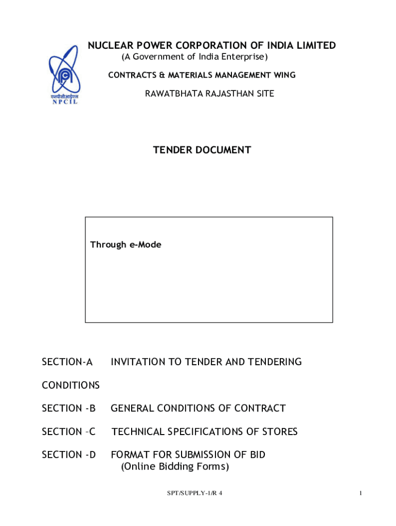 NUCLEAR POWER CORPORATION OF INDIA LIMITED (A Government of India Enterprise) CONTRACTS & MATERIALS MANAGEMENT WINGRAWATBHATA RAJASTHAN PRETENDER DOCUMENTThrough eModeSECTIONAINVITATION TO TENDER