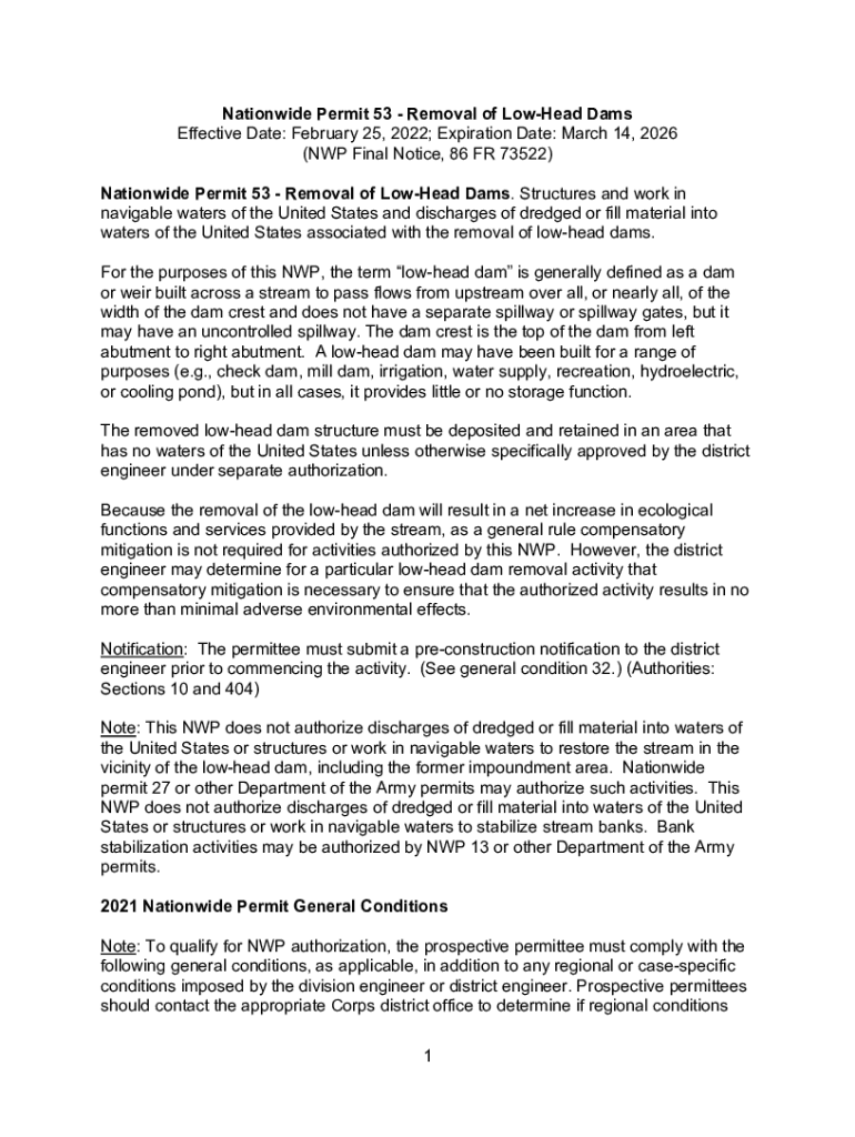 Get the free Nationwide Permit 53 - Removal of Low-Head Dams