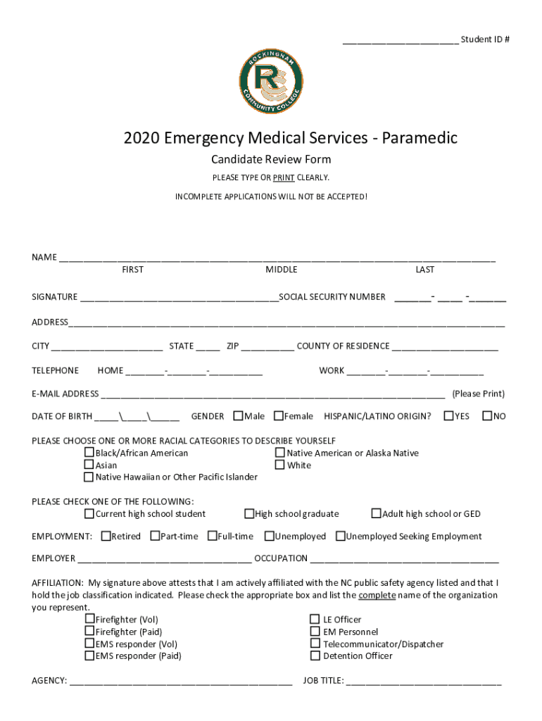___ Student ID #2020 Emergency Medical Services Paramedic