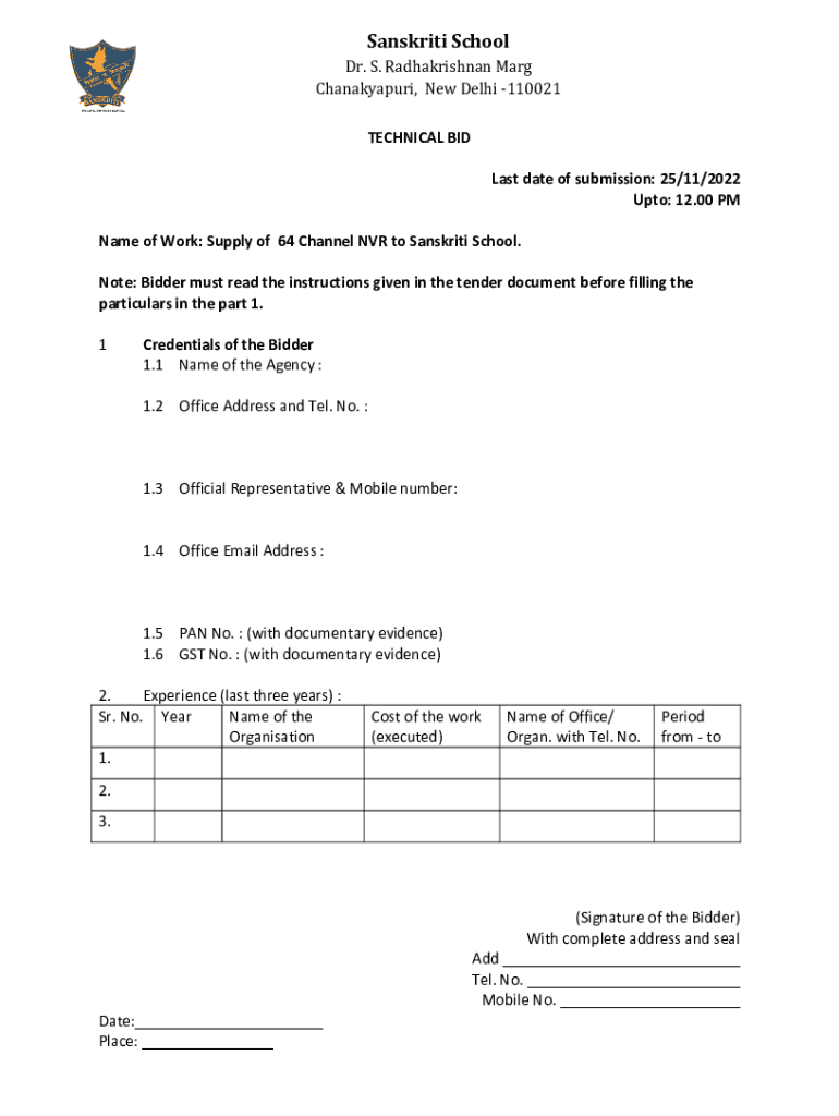 Get the free Name of Work: Supply of 64 Channel NVR to Sanskriti School