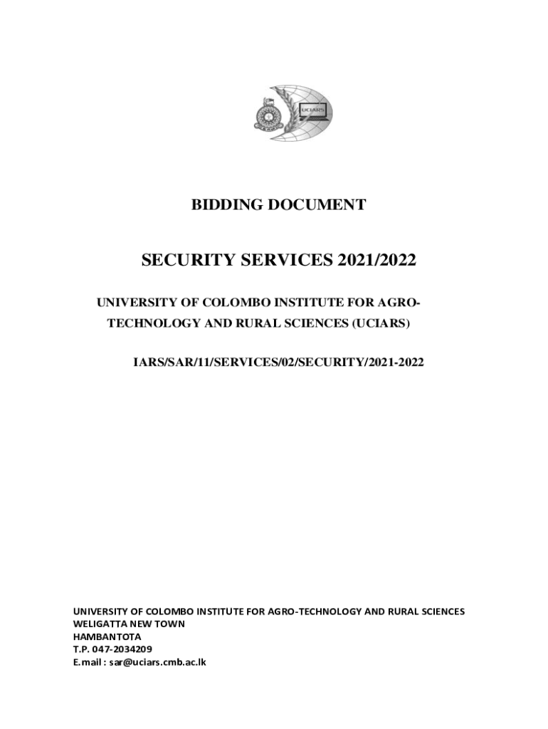 CARS/SAR/11/SERVICES/02/SECURITY/20212022UNIVERSITY OF COLOMBO INSTITUTE FOR