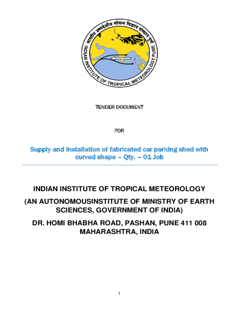 TENDER DOCUMENTFORSupply and Installation of fabricated car parking shed with