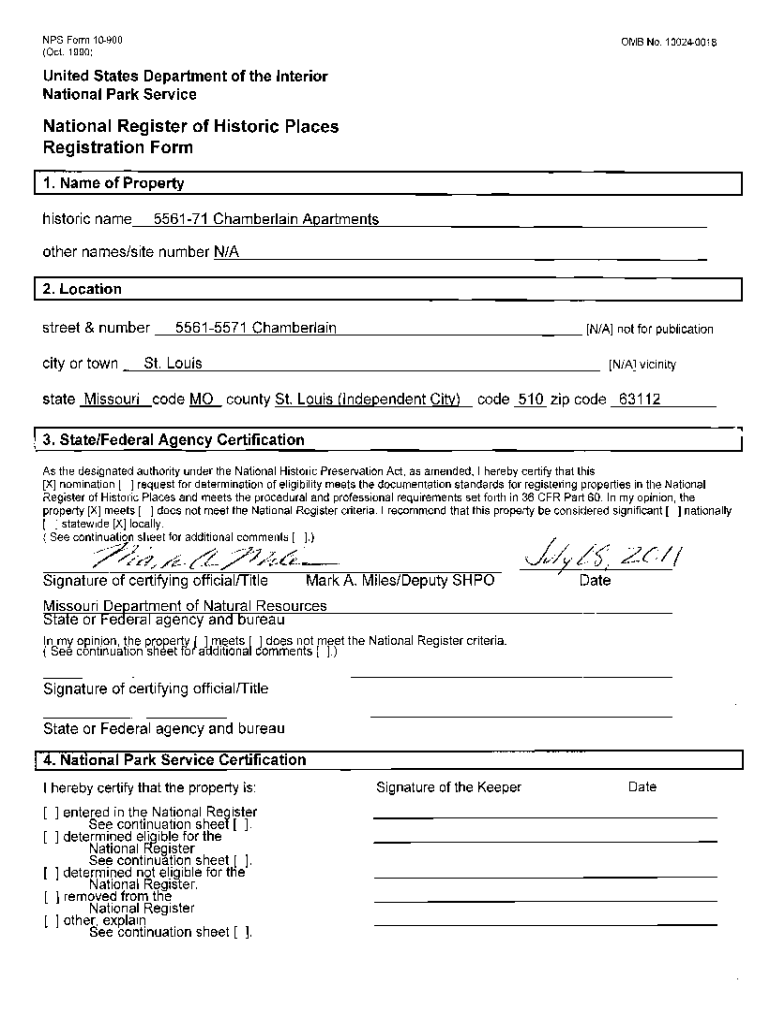 AUDI/NPS CNRHP Registration Form556171 Chamberlain Apartments St. Louis (Independent City), Missouri Page 25. Classification Ownership of Property [X] private [ ] public local [ ] publicState [ ]