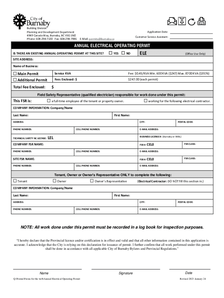 Edit your electrical annual operating permit form online