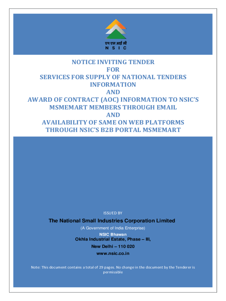 Get the free Notice Inviting Tender For Supply of National Tenders Information and (Award of Cont...