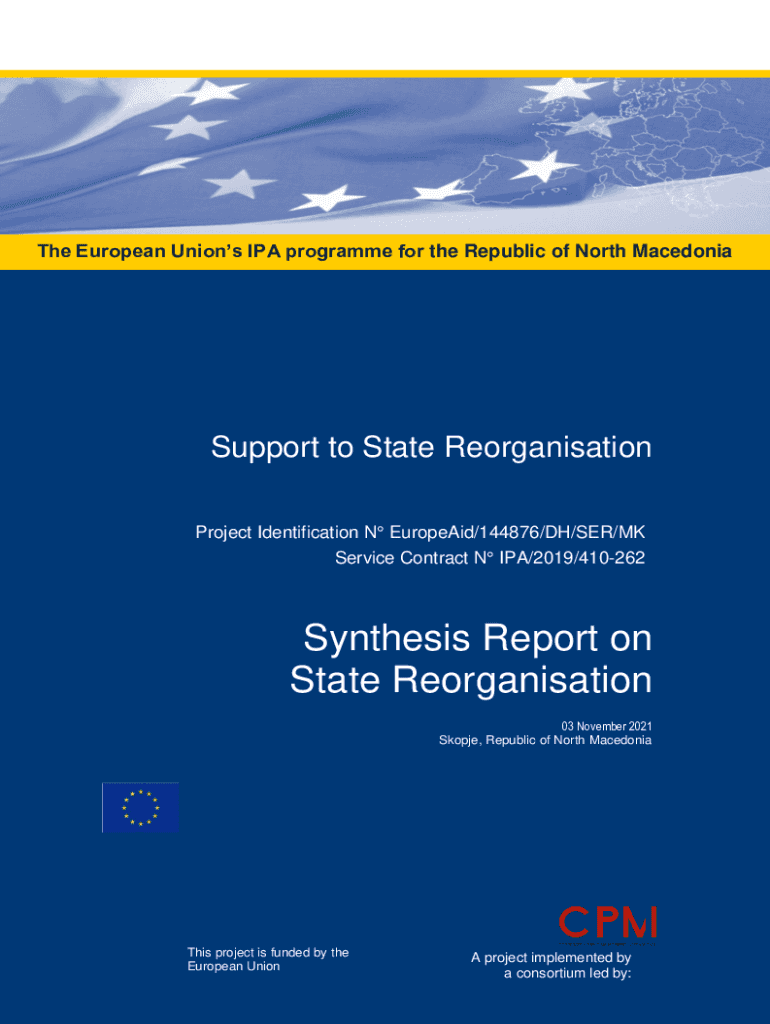 The European Unions IPA programs for the Republic of North MacedoniaSupport to State Reorganization Project Identification N European/144876/DH/SER/MK Service Contract N IPA/2019/410262Synthesis Report